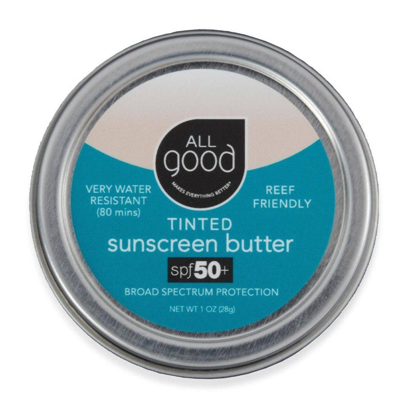 Smooth, creamy, organic. Our SPF 50 Tinted Mineral Sunscreen Butter. Made with zinc-oxide, this reef-friendly butter physically blocks UVA/UVB rays and is tinted with iron oxides to blend with most skin tones. Leaves a “barely-there” matte finish.