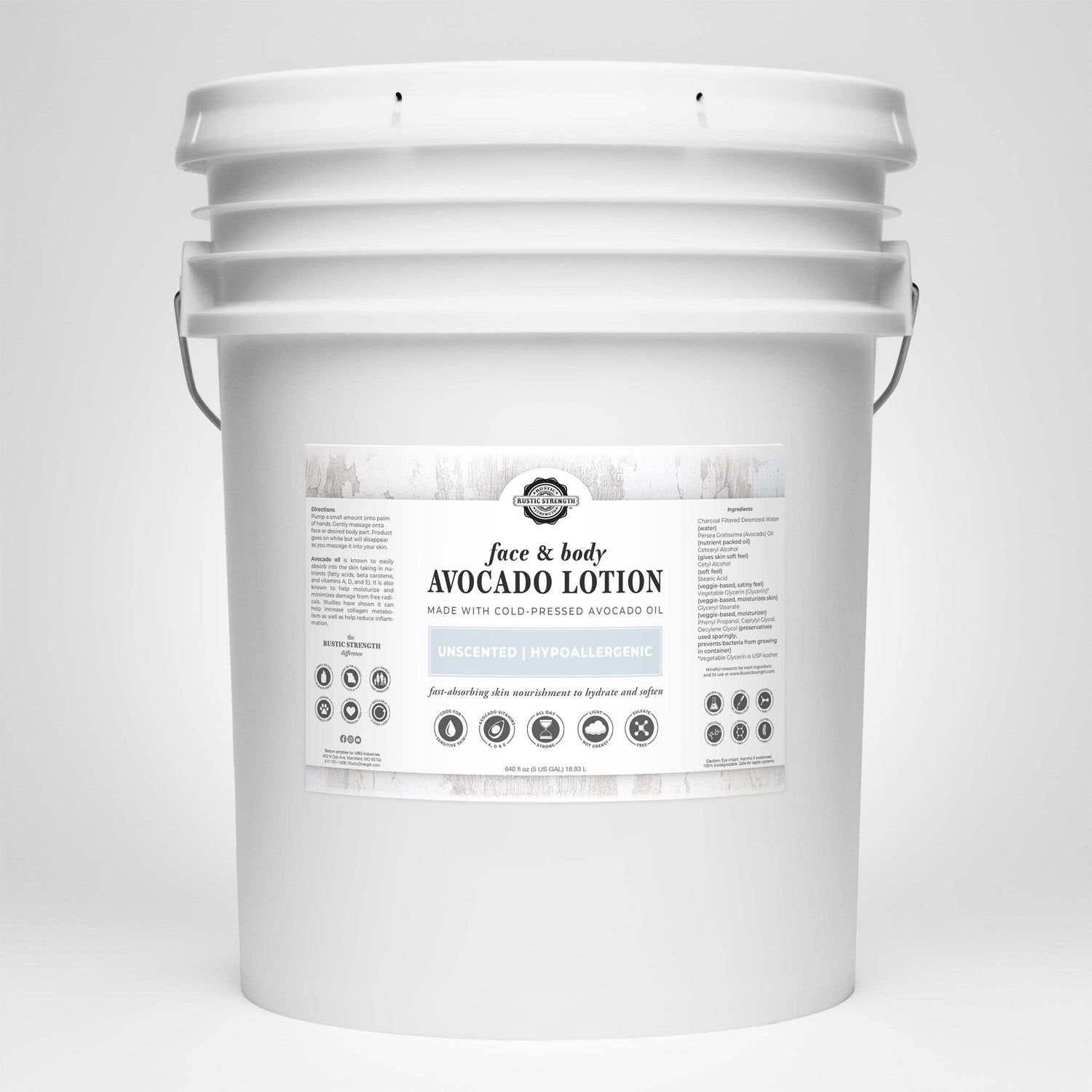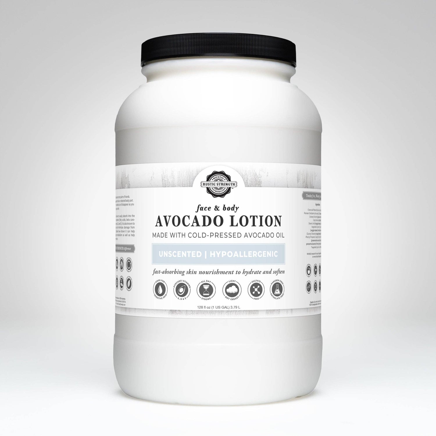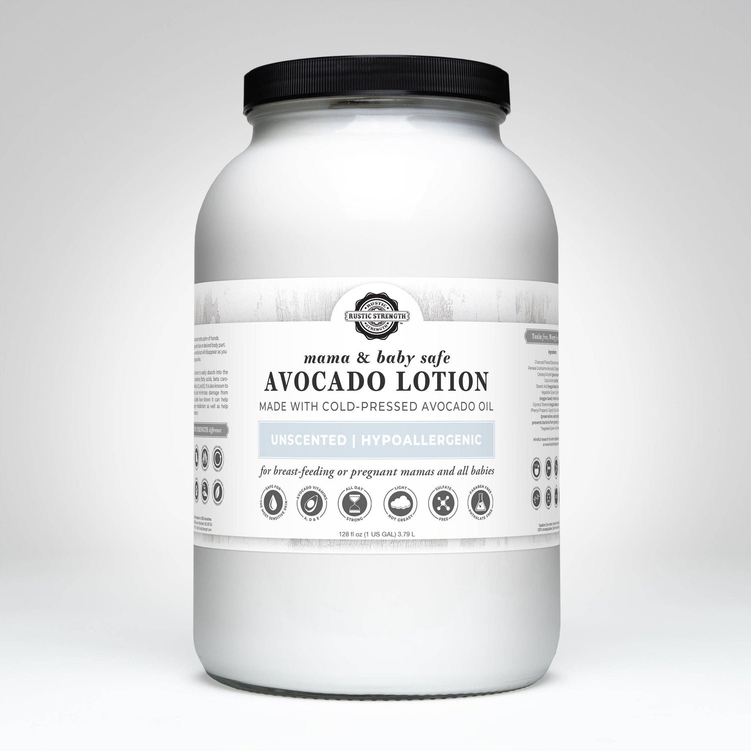 Our highly absorbent face and body lotion a made with cold-pressed avocado oil and only a few other plant-based, earth-derived, and biodegradable ingredients that aid in penetrating the skin barrier but do not leave you feeling oily or heavy like other combination lotions. We use the least amount of preservative possible while keeping in mind the amount of transfer the product might go through. If you have sensitive skin customers you will want this product without any EO or phthalate-free fragrance oils added in.