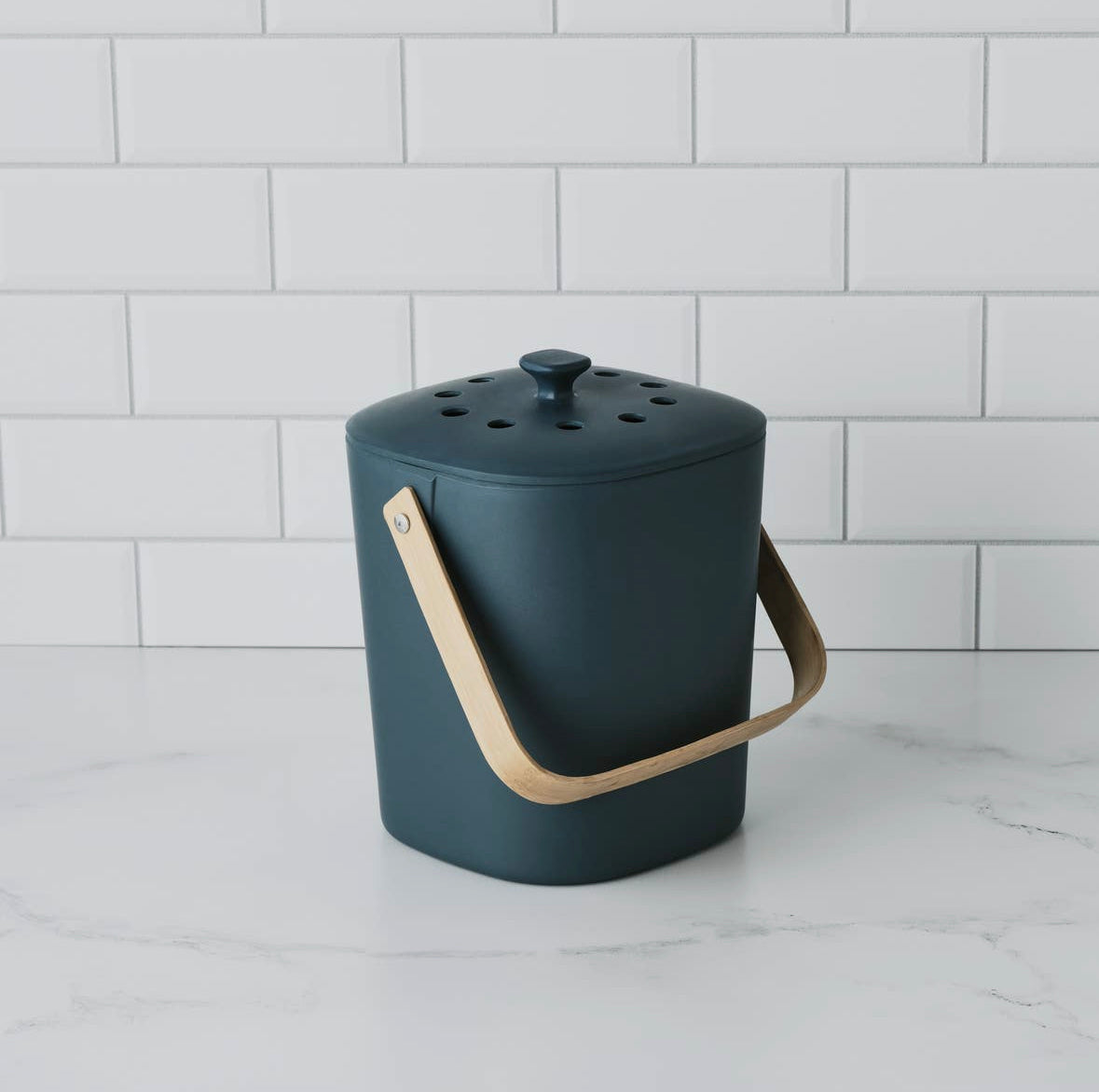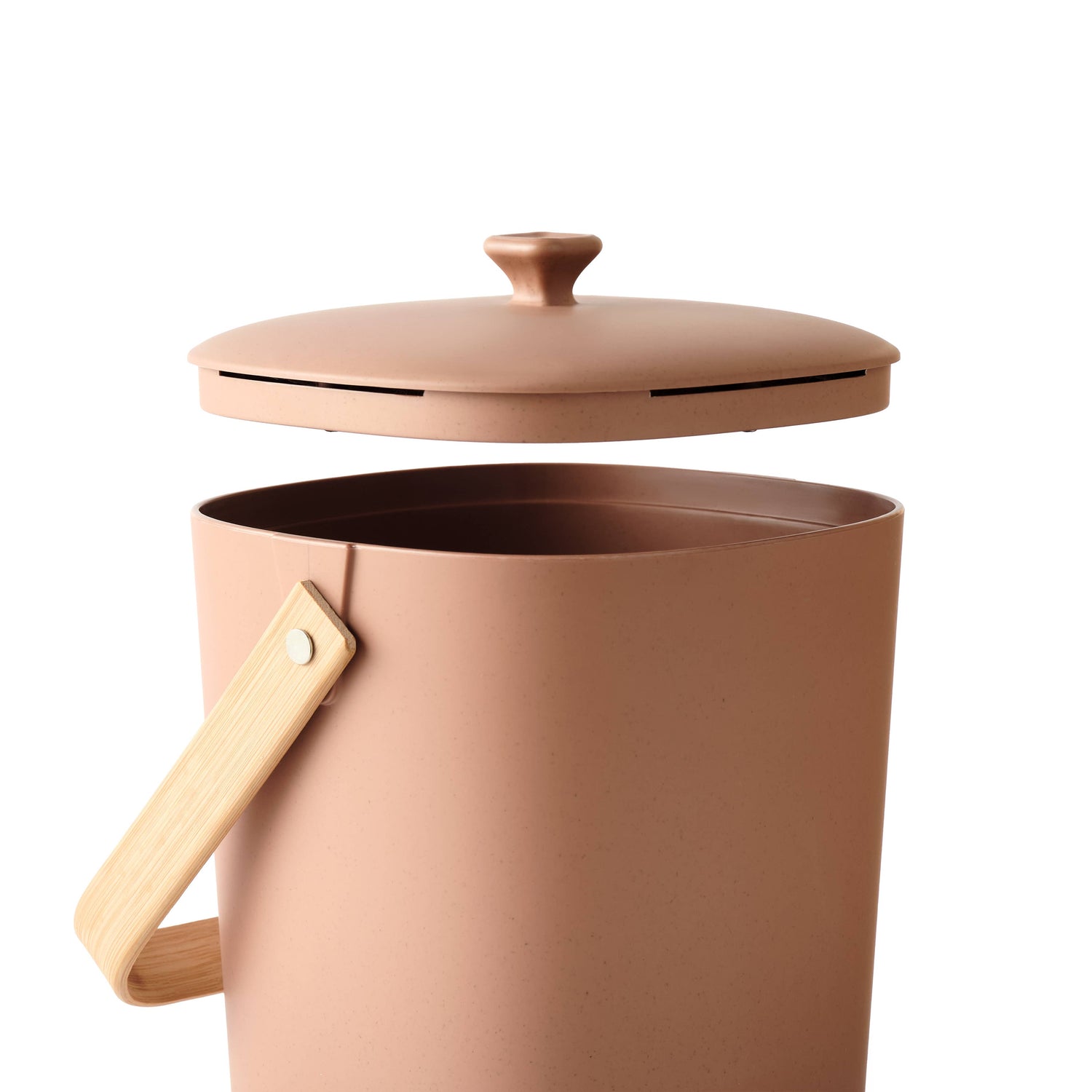 Let's send less to the landfill! Convert your own organic waste into compost to enrich the soil in your backyard. This bin is perfect for storing organic scraps before transferring them to an outdoor compost pile or collection site. The filtered lid helps to absorb any smells caused from off-gassing. Includes a bamboo handle for hassle-free transport.