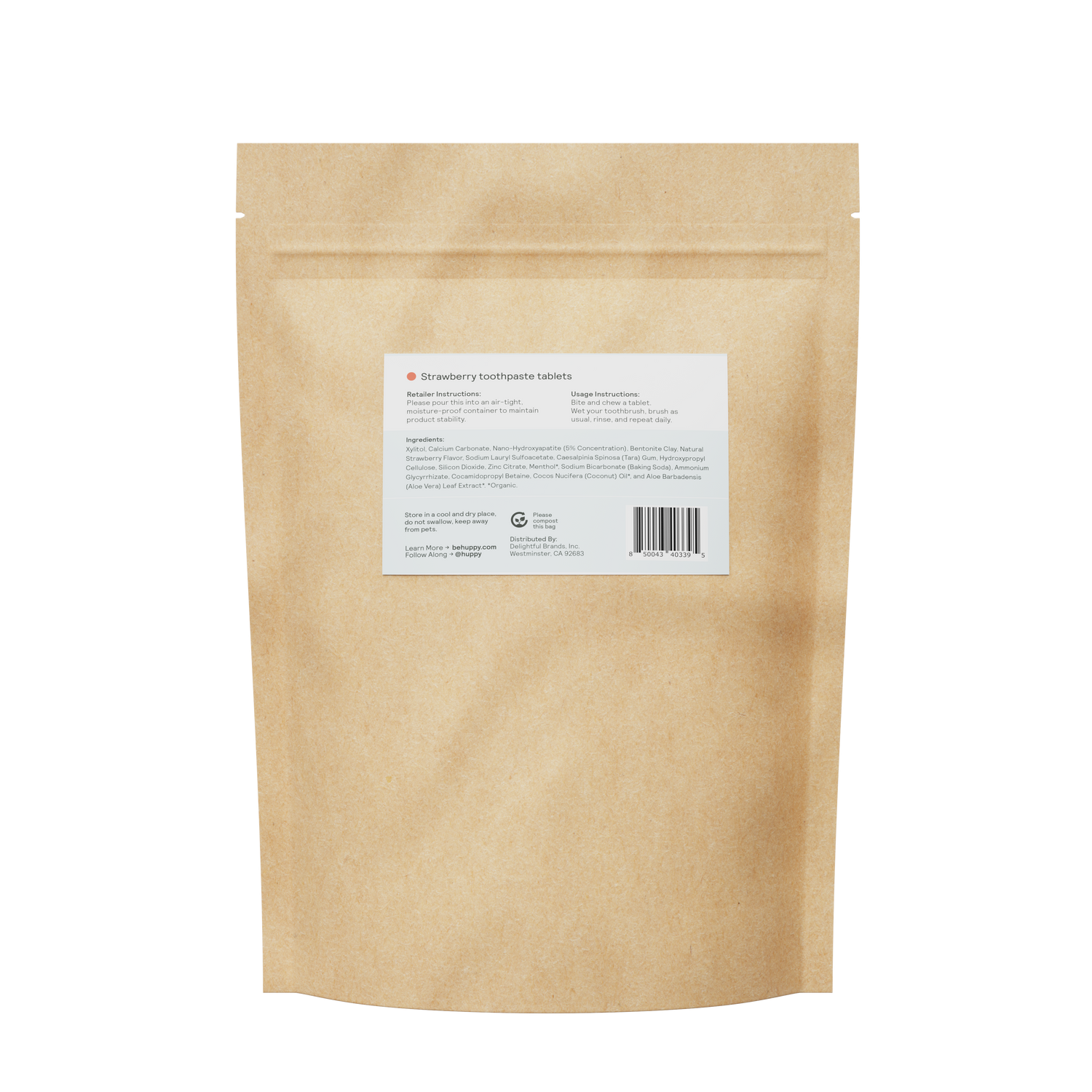Sold by the ounce, Huppy Toothpaste Tablets fluoride-free, zero-waste alternative to traditional paste — perfect for kids and adults alike. Made with clean ingredients like coconut oil, aloe vera, and xylitol, each tablet contains nano-hydroxyapatite — a non-toxic fluoride alternative that helps remineralize enamel and reduce sensitivity.