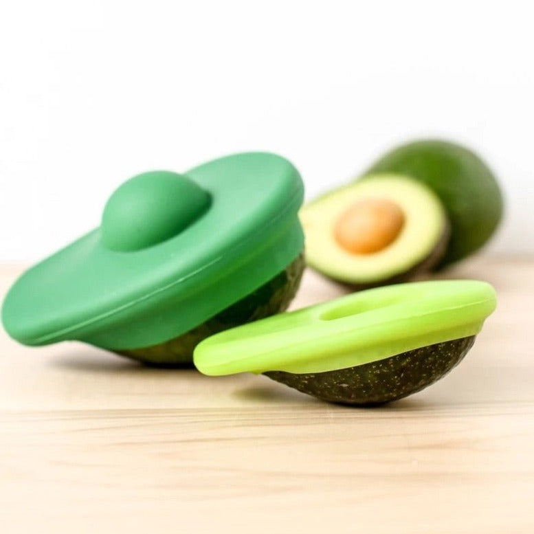Many of us who love avocados eat one half at a time and save the second half for later. Avocado Huggers are designed to keep the other half fresh longer. Our set of 2 sizes makes sure you are covered for avocados large and small. And the unique pit pocket can be pushed in or out, ensuring a good hug whether the half you’re saving has a pit or not.
