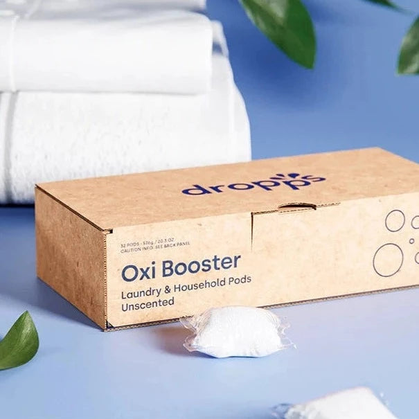 A natural process called oxidation is what makes our oxi booster pods so efficient. Oxygen based bleach is effective at brightening whites and removing stains, and less aggressive than chlorine based bleach. Oxygen based bleaches attack the structure of the stain or dirt residue to help whisk it away down your drain. It's science!