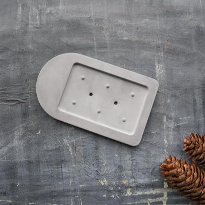 The soap tray's finish is similar to concrete but with draining holes and pathways which will ensure soap and shampoo bars dry and your countertops and bathtub ledges are clean from soap residue.