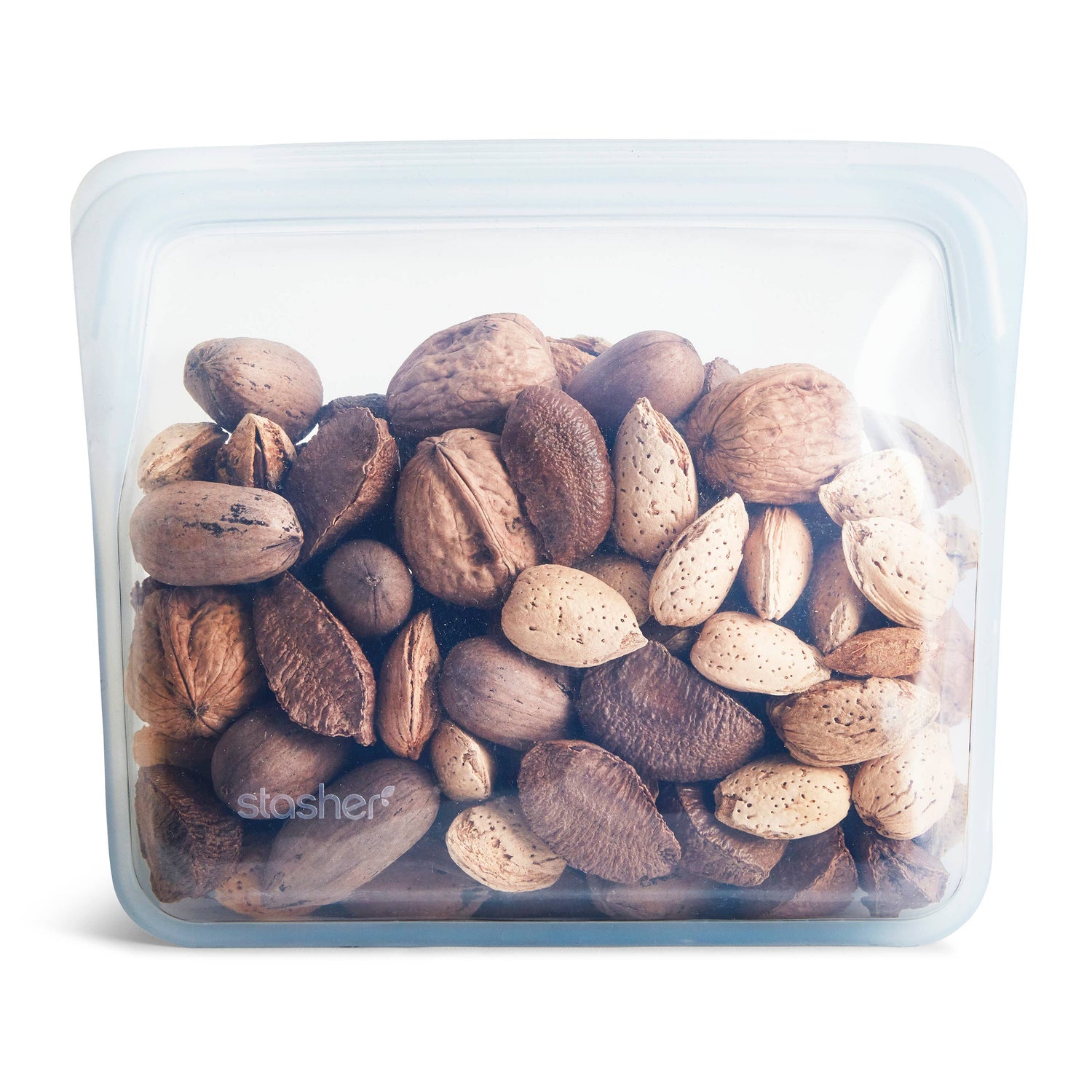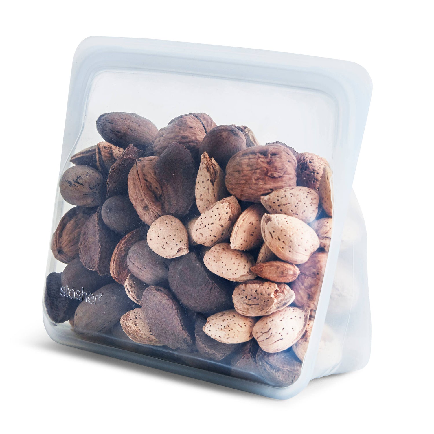 Possibly the most versatile of the Stasher lineup, the Stand-Up Stasher bag is endlessly reusable and useful in the kitchen and beyond. Perfect for bulk shopping, storing leftovers and soups, and marinating meat and veggies, the Stand-Up Stasher bag folds flat when not in use for ultimate portability and space-saving. This radically functional bag is made of platinum food-grade silicone and is stovetop, microwave, dishwasher, and freezer safe. Its patented Pinch-Loc® seal also makes it an ideal makeup or personal care product container, especially on the go.
