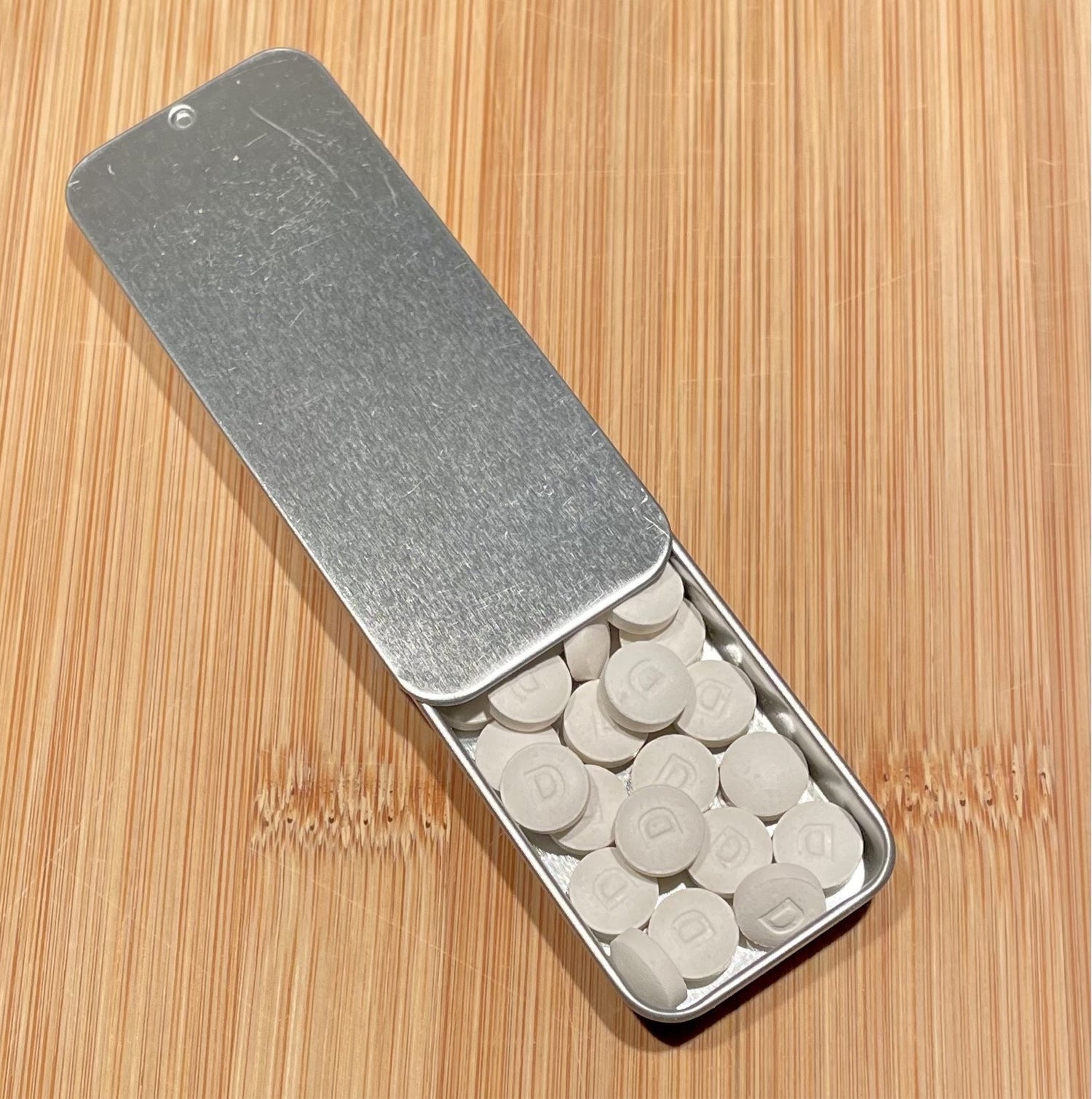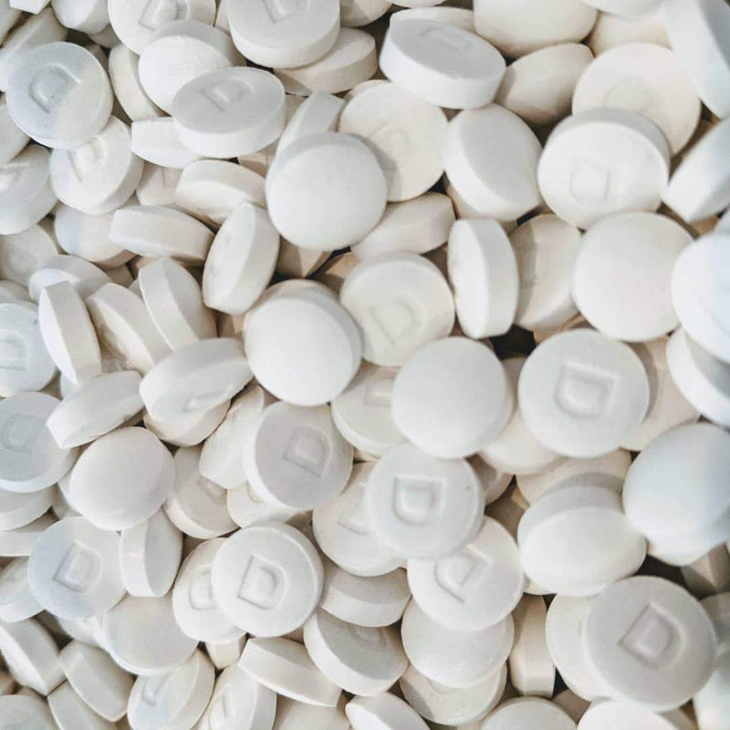 Ingredients: Microcrystalline Cellulose, Sodium bicarbonate (Baking Soda), Silica, Amisoft (Sodium Lauryl Glutamate), Magnesium Stearate, Natural Mint Flavor from essential oil, Menthol, Xanthan Gum, Stevia, Citric Acid